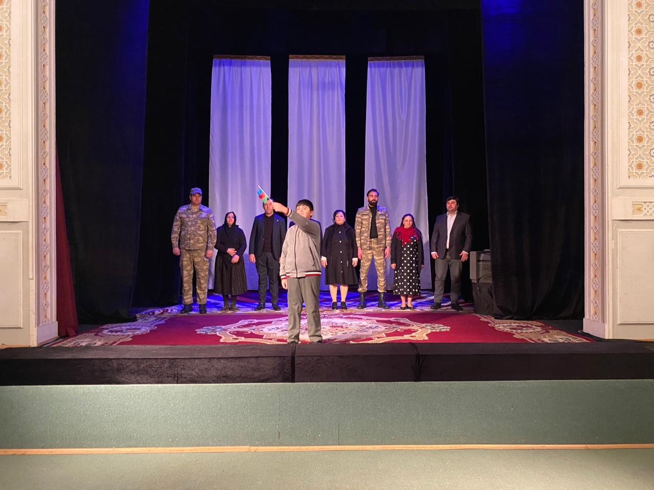 Daha sonra teatrın cari il repertuarına daxil olan, Qafar Cəfərlinin “Şəhid bayrağı” tamaşası məktəblilərə təqdim olunub.